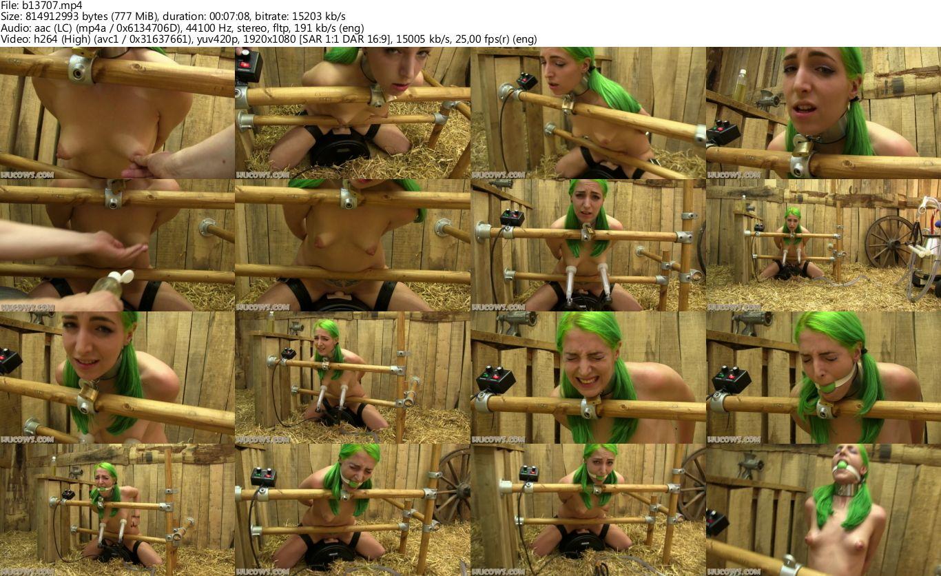 Liz is back! And she is in for a ride! This is one of the hardest sessions for HuCows: getting milked while sitting on a Sybian. Their brain just can not handle so much stimulation at the same time. They start to make very strange sounds, and it is very exhausting for them. The position is also very harsh on the back, Liz will be straining the entire time she is on the Sybian. Liz can take some hard torture and nipple training, but this is a lot to handle, even for her! When we gagged her, she got so aroused she had a very powerful orgasm which almost broke the wooden milking frame. She had barely even noticed her nipples had grown so much! Enjoy this ride, Liz certainly did!