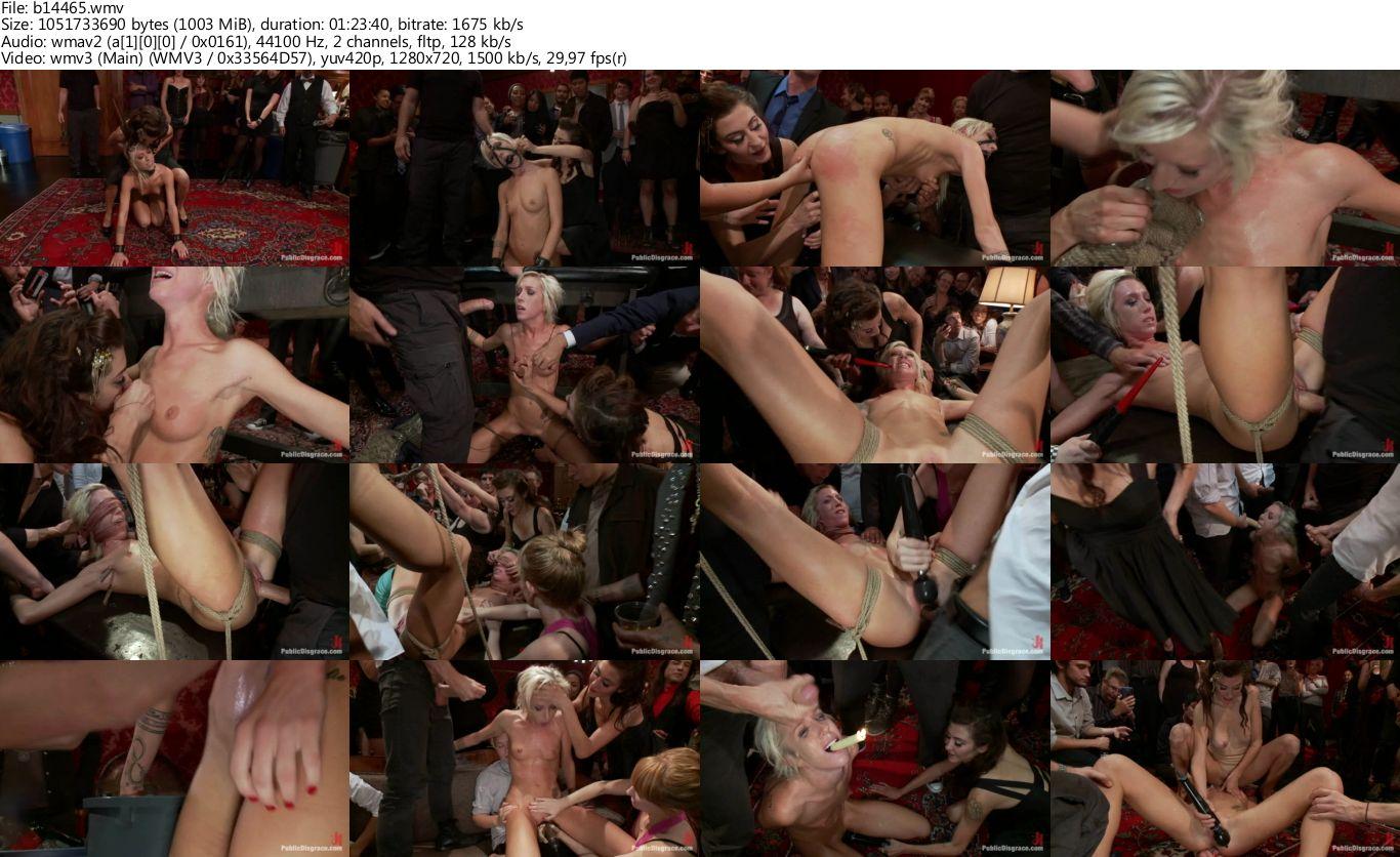 After making friend’s in the desert at Burning Man, Princess Donna decides to throw Maia Davis a birthday party she will never forget! Dropped to her knees by ballerina boots, and lead in like a dog on a collar, Maia is introduced to the guests, then bent over, fisted, made to squirt, and groped by a room full of 122 strangers. Her nipples are tied tightly and pulled away from her body while she sucks cock and cums uncontrollably. Then she is bound with her legs wide open, blindfolded and made to guess who’s cock is inside her. She sucks at this game, and is mercilessly zapped by the crowd as a result. Totally unaware of who’s dick is in her pussy, and who is administering the beatings and electricity. For a final hurrah she is bent over in a trash can, and made to squirt BUCKETS of cum all over the floor. With a sore spent pussy she has a candle placed in her mouth while the crowd sings her happy birthday! Hot wax drips down her body while she prays that someone will be able to put the flames out with their cum! A shoot not to be missed!