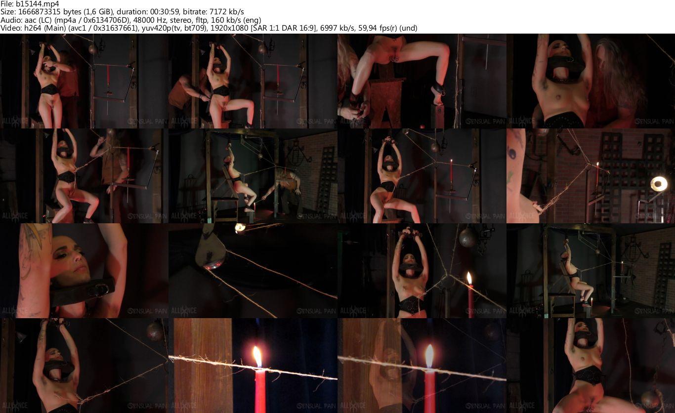 She is running out of time. Master James puts slave abigail in yet another predicament with fire and sisal string attached to clothes pins on her nipples and pussy. A terror, a long anticipation for the excitement of the possibility that her lady parts maybe pulled off. - She is running out of time.