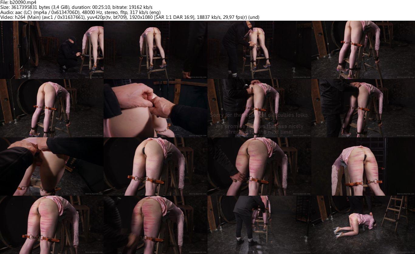 There is no doubt this has been a rough day for Tramp, one she richly deserves, of course, but harsh nonetheless. The cunt starts out in the cage, a good place for a piece of meat like this bitch. But while cage time can be cruel, it is also not nearly painful enough to satisfy the agony needs of this cunt.From the cage to the old step ladder, it is easy and quick and a bit disorientating for a slut, all the better. Then the cane comes out, and the agony starts, and the screams begin, and eventually the crying and begging.During all this, Tramp is telling us what a piece of shit she really is, and how much she needs and deserves to be punished just for being a cunt…and having a cunt. Those are her words, not ours.In the end, the bitch's and thighs are striped with angry welts. Someplace along the way a plug was rammed into her asshole. After all this agony, degradation, humiliation the cunt is on her knees, head prostate and showing off her marks.Then back to the cage until next time she is brought out to provide some entertainment. Tramp got All Dressed Up just For Agony.