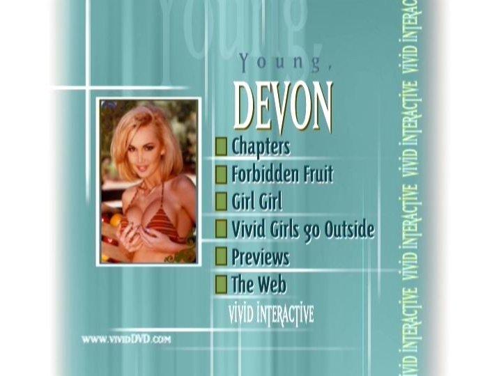 She only looks innocent...Devon stars in this DVD of her earliest scenes for Vivid. Fourteen scenes of young lovin', young kissin', and young teasin'...for your eyes only.