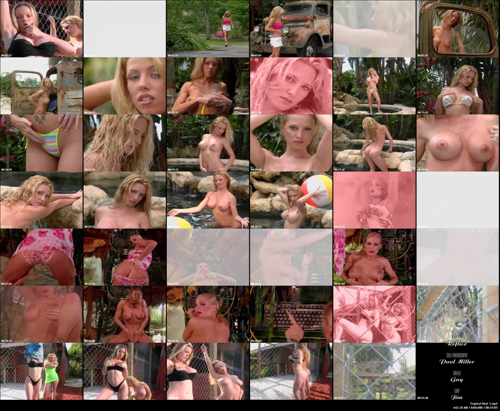 Nine lovelies, from New Vision's Tropical Heat and Tropical Heat 2, strip, frolic, & groove to the beat in a gorgeous outdoor paradise in this latest double feature DVD. Heavy-hootered feature entertainer, Erica Everest makes a special appearance, and several other young models make their on-camera debut in this all-outdoor erotic showcase of fine feminine flesh! Whether cooling themselves off under a refreshing garden hose or prancing about alone or in pairs, these fine ladies show their best assets complete with a visit to the cage of a very big cat. Meow!