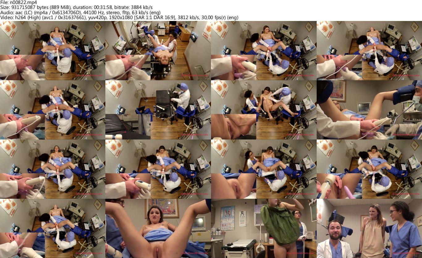 After Alexandria Riley climaxes, she tells the doctors she needs the thirty-second break to recharge. After a quick break, the doctors resume their research. Doctor Tampa asks Alexandria if she prefers a shallow or deep thrust, and she states she prefers deep. In no time, the subject is back to moaning. The patient monitor beeps loudly as her heart rate increases. Shortly after the beeping begins, she has her second climax. Doctor Tampa tells her there are forty-seven minutes left and that only thirty-second breaks are allowed. The reason for short breaks is to ensure her orgasms keep building to see if multiple orgasms back to back can be achieved. “Holy shiza, this is going to be a long forty-seven minutes,” Alexandria says. She then asks if she can squeeze Doctor Rose’s shoulders while they stimulate her, and Doctor Rose allows her to. The doctors begin with the internal and external stimulation before Doctor Tampa moves to adjust the tripod camera. Just after he finishes adjusting the camera, the monitor starts beeping loudly. Alexandria rigidly lies there, focusing on the pleasure being delivered to her body! Then suddenly, a wet sloshing sound is heard on the vibrator, followed by her yelling that she “came.” The floor at the end of the table's now completely soaked with her fluids. “There’s no way I can come thirty or forty more times,” Alexandria says with an awkward laugh. She lays back and sighs, wondering what she has gotten herself into. After the mess is cleaned up, the doctors resume. Not long after the doctors resume, Alexandria tenses up and climaxes for the fourth time. She asks Doctor Tampa how close they are to being finished, sighing and laying her head back when she finds out they are only twenty minutes in. Moments later, the subject reaches her fifth climax. Doctor Rose then asks to be excused to use the restroom, so Doctor Tampa and the subject have some small talk until she comes back. She comes back into the room, and the testing quickly resumes.Alexandria climaxes for the sixth time, again with internal and external stimulation, and is relieved to be asked by Doctor Tampa if she needs a break. Her response, of course, was yes. He decides to switch out the Hitachi for another wand during the break. They resume with the stimulation, but Alexandria does not sexually respond to the new wand, so Doctor Rose switches back to the Hitachi. While Doctor Rose continues stimulating the subject, Doctor Tampa administers internal stimulation along with stimulation to Alexandria’s breasts to see if it aids the subject in achieving her next orgasm. Alexandria climaxes, and now it is in speculation on whether or not the stimulation of her breasts assisted her orgasm. Doctor Tampa starts the mandatory thirty-second break with an “inappropriate” joke, quickly stating that Alexandria shouldn’t be offended. “Not at all, considering you just gave me twelve orgasms,” she says. “CLINICALLY gave you twelve orgasms. You haven’t given me any,” replies Doctor Tampa slyly. She was caught off guard by that comment and replied, “Well, next time you want to be the patient, I will happily conduct the research orgasm study on you.” The doctors begin the research after the thirty seconds are over, but Doctor Rose is interrupted by a call. She temporarily leaves the room, leaving Doctor Tampa alone to begin the process. Doctor Rose reenters the room and quickly heads over to assist him.
