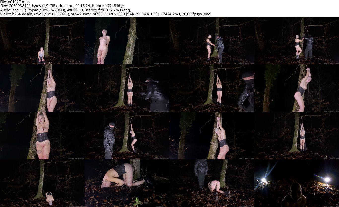 This is how EmilyAddams describes her ordeal in which she is loaned to a German sadist just for the fun on it. “Into the Woods – Where else would you bring a bitch to. torture her, if not to HELL? Exactly. That bitch is shipped as ordered – dressed like the sweet little whore she is and sent around the globe to get beaten up – by some stranger that we loaned her to. She suffers for nothing else than for your entertainment. And she would do anything to keep it that way. Like the piece of meat she is, she then gets strung up at a tree – shaking. We can’t clearly tell if that’s because the meat is scared or excited – but surely the fact that it’s only 36°F in the German winter forest, and the exposed slut is wearing nothing but heels and a corset, has something to do with it. n Of course, the cunt is also wearing a buttplug – of course. Whats starting off as a fun and cunt-wetting phantasy seems to become reality quite quickly. The bitch gets whipped across it’s small and kinda saggy tits – and clamps are added to make them look less worthless. Then, the guy pulls out a whip and starts to make her suffer – like a piece of shit deserves it.” – Emily Addams